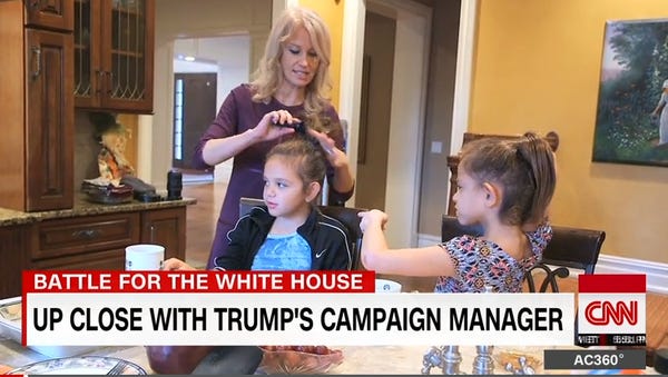 But the CNN profile does give us a sense of something we long suspected -- that outside the Trump campaign, Kellyanne Conway is a regular human being, albeit one with a lawyer husband who defended Bill Clinton accuser Paula Jones back in the day. She has kids! They play piano and go to birthday parties! They rap songs from the musical Hamilton in her general direction!
