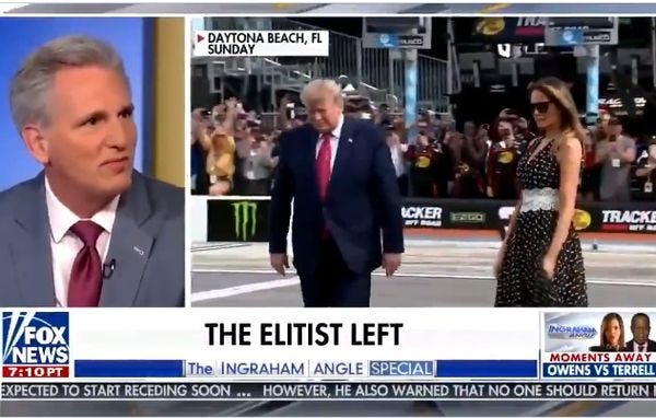 House Minority Leader Kevin McCarthy was on Fox News last night, explaining to Laura Ingraham that Donald Trump is an everyday man of the people, because unlike Democrats, who are all out-of-touch elitists, Donald Trump actually just barely puts up with the rich people with whom he surrounds himself and for whom he operates tacky, overpriced trash palaces. We haven't actually seen the whole segment, but do we really need to?
