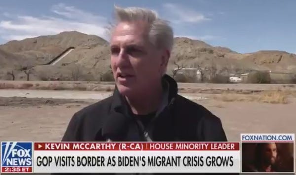 So McCarthy's blatant lies about apprehensions at the southern border are nothing new. Which is perhaps why he felt no pressure to present any evidence besides claiming that he talked to border agents and "You saw it in their eyes."