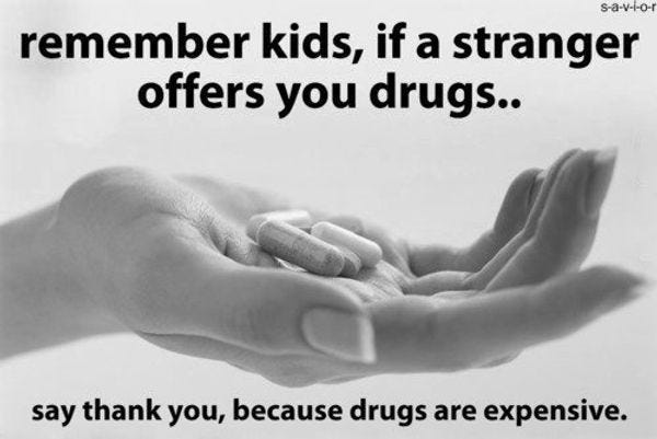 Anyway, teens, say no to drugs, because they are bad and terrible and will ruin your life. But a little weed won't kill you, NERDS.