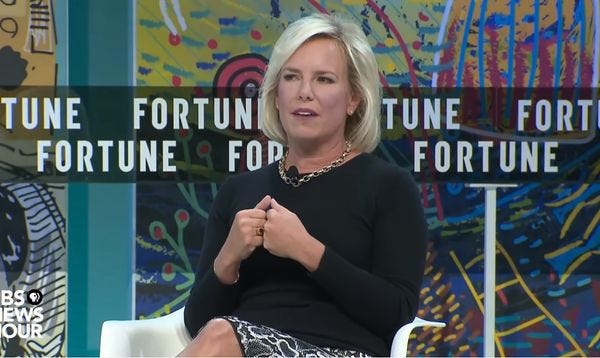 Former Homeland Security Secretary Kirstjen Nielsen appeared yesterday at Fortune magazine's "Most Powerful Women Summit," an event that had lost some participants, like Hillary Clinton and singer-songwriter Brandi Carlile, because who wants to be onstage with an engineer of concentration camps? Fortunately, she was interviewed by "PBS NewsHour" correspondent Amna Nawaz, who didn't let Nielsen get away with any doubletalk -- or rather, tried not to let Nielsen get away with doubletalk, although every effort to fact check the former gulag chief was met by more bafflegab.