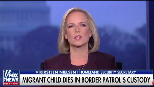 Last I checked, Kirstjen Nielsen was still secretary of Homeland Security. This is despite two children having died in Border Patrol custody this month. For anything other than the Evil Department of Dead Kids, these are terrible results. So, why does Nielsen still have a job? It's certainly not because of her ability to convincingly express the emotions we humans call "remorse" and "compassion."