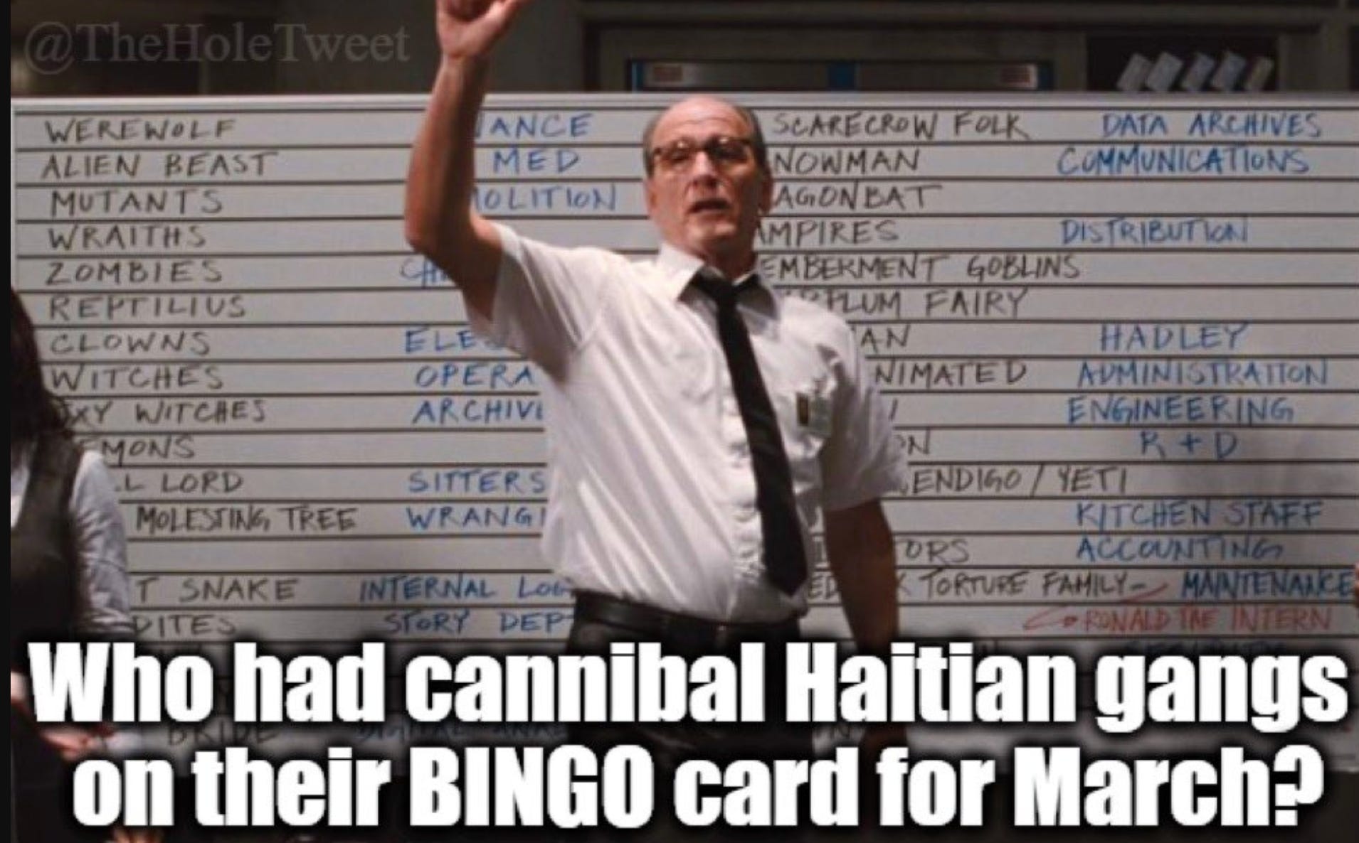 Most notably, in 2024, Elon Musk asserted without evidence (as if he’d have it any other way) that cannibal Haitian gangs were roaming our streets, armed with fava beans and chianti, looking for victims to have over for dinner. QAnon people have insisted for years now that “elites” regularly eat babies and use their skin to make red baby leather shoes, and that they scare babies and children with satanic rituals in order to drain their adrenal glands of adrenochrome, despite the fact that adrenal glands neither store nor produce “adrenochrome.”
