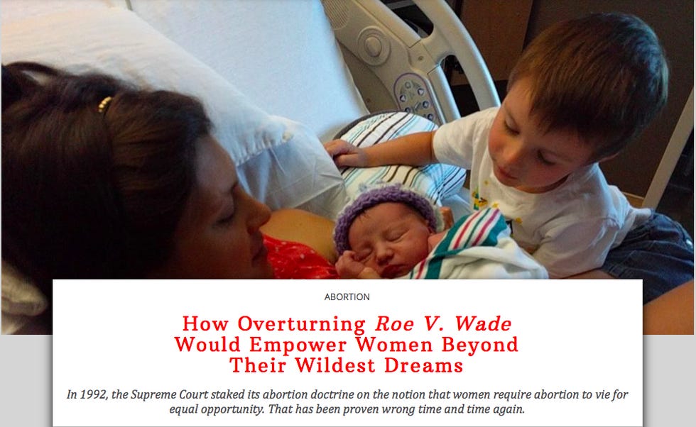 First up, we've got Catherine Glenn Foster over at The Federalist, who wants us to know that losing our reproductive rights will empower us beyond our wildest dreams, according to the actual title of her essay.