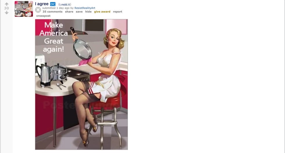 Redditor ResistRealityArt responded "Nothing wrong with rights as long as one can keep their legs shut and wait until marriage." You know, just like Donald Trump did.