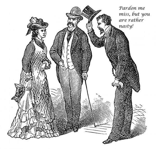Certainly, by all rights, a lady must be told when she is being nasty. It is simply the gentlemanly thing to do. Like pulling out a chair or taking one's hat off or standing when she enters a room, it is a much honored tradition. In the Victorian era, a gentleman would signal to a woman that she was being nasty by using discreet signals with a fan, or loading her up with laughing gas against her will.