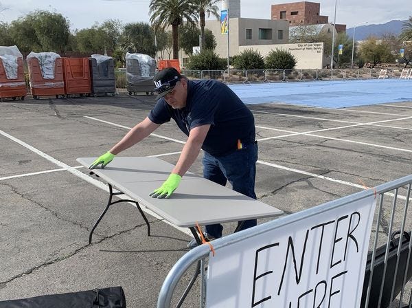 "We found that it was very difficult to disinfect and clean," David Riggleman, communications director for the City of Las Vegas, told CNN. "We had asked for sleeping mats, which we use at the Courtyard — and those can be disinfected easily. But there were none to be had."