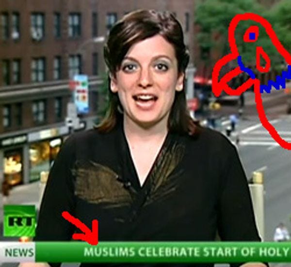 What will our Unprofessional Leftist and full-time Obama apologist Sara Benincasa say about Robert Gibbs, on Russian TeeVee?The answer may surprise you.Or not, as she DEFENDS him and attacks the innocent hippies of UC Santa Cruz, who only want to smoke their marijuana bongs and close Guantanamo, with their minds . Why is she on Russian TeeVee, anyway? Is she soft on communism, too? That would explain her "news crawl" about the Muslins' "holy day," as if anyone other than Jesus could possibly have a Holy Day/Month.