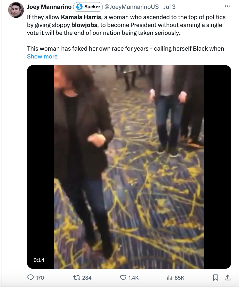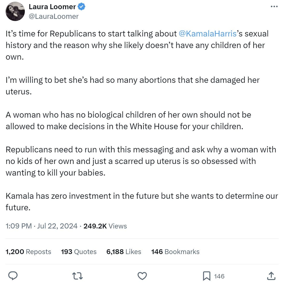 The other thing they think they have on Harris is, to quote Laura Loomer, “her sexual history.”