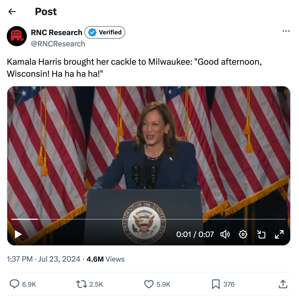 For instance, one of their biggest criticisms of Harris? She laughs! She laughs a lot and she laughs loudly! And they do not like it at all.