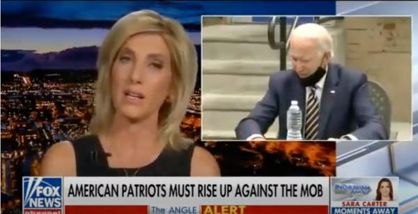 Ingraham believes the media is trying to psych out conservatives and make them think Joe Biden is some unstoppable juggernaut. But he's reallyweak, weak,she says! Unlike the young and spry, ramp-slaying Trump, Biden's old. And he don't talk so good. That's why he's not holding rallies. It has nothing to do with an ongoing public health crisis.