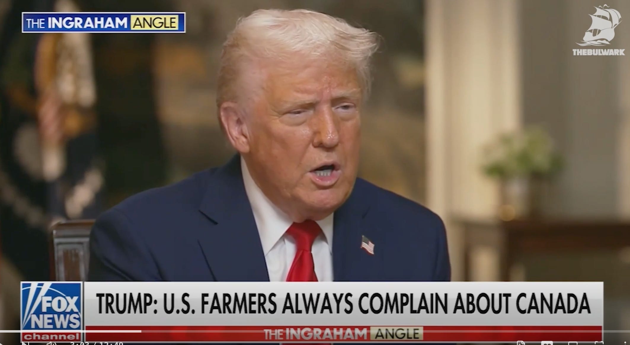 Ingraham let him babble, then finally, incredulously, said, “You’re tougher with Canada than you are with some of our biggest adversaries! Why?”
