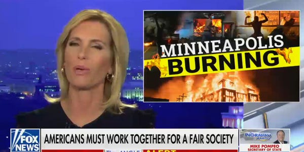 Laura Ingraham has a message for The Blacks, so in case The Blacks were not watching Laura Ingraham last night — you know, ON THE OFF CHANCE — here is that message. It is that Donald Trump of all people understands what police brutality is like, because the Deep State FBI has been Russia Witch Hoaxing him all these many years. Aren't those just the same?