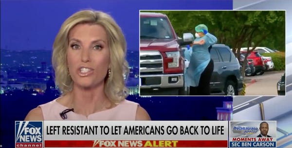 INGRAHAM: I love that! Because if we wait for Dr. Fauci's seal of approval to reopen America we may not have an America to reopen, at least not one we recognize. I have my own testing proposal. Wanna hear it?