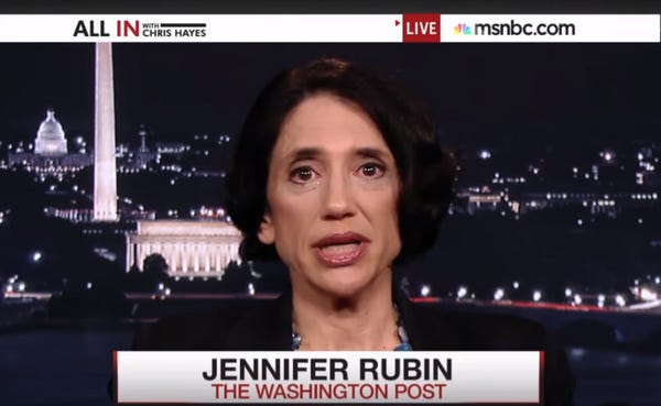 Of course, reading the letter, one learns that it's not Rubin's conservatism or lack thereof that makes these "thinkers" mad. It's that she refuses to be utterly braindead in the age of Donald Trump. The letter begins by accusing the Washington Post of having a "credibility problem" (among people who eat human hair), and goes on to give examples of times Rubin -- who has been a conservative columnist at the paper since forever but continually commits the twin cardinal sins of thinking Donald Trump is full of shit and going on MSNBC -- has used her noodle and written her own thoughts on an issue, as opposed to what President Good Brain thinks. Indeed, they've caught Rubin red-handed believing in science and thinking women should be sovereign over their own bodies. HOW DARE SHE!
