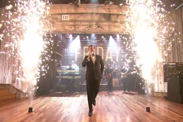 What a week! But at last, it is Friday. What you really need is Stephen Colbert singing, dancing, and rescuing a very bad song from its own terribleness, with the help of Jimmy Fallon and the Roots. In Colbert's voice, rhyming "bowl" with "cere-ole" is genius.