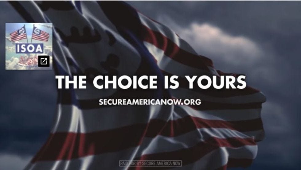 Where the other ads closed with airliners flying off to the French and German Islamic states, this one ends with the photoshopped ISIS-American flag, "America the Beautiful," and the electoral warning, "THE CHOICE IS YOURS."