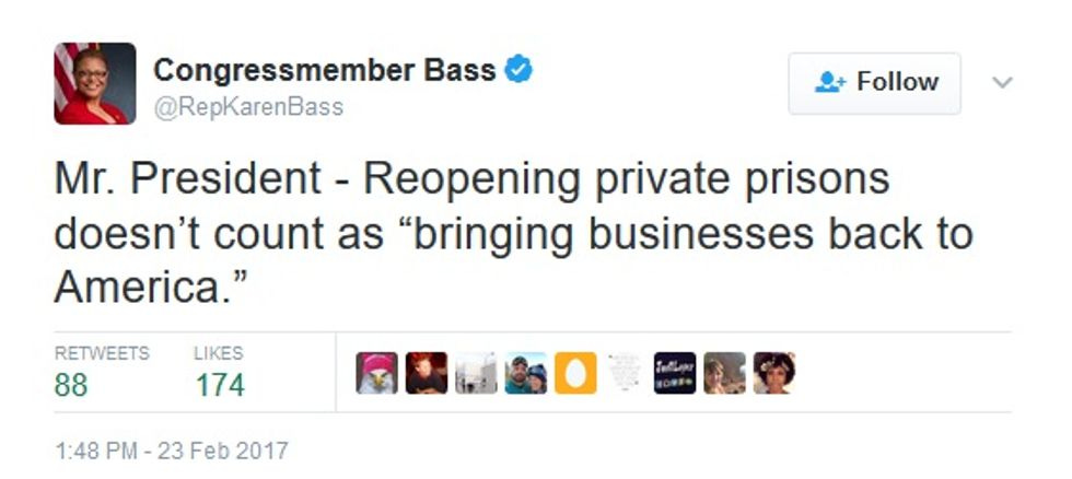 The Daily Beast notes that Yates's memo hadn't yet resulted in significant reductions in the number of federal prisoners in private prisons (only about 1,600 prisoners since December) because These Things Take Time, but that it was nonetheless important since it "signified that the federal government had serious reservations about contracting with private companies to incarcerate people, and was gradually trying to change." Ah, but we now live in Trump's America, so all good things must be systematically undone. Sessions argued that the main reason for reversing the policy was to prevent future overcrowding, saying the Yates memo "changed long-standing policy and practice, and impaired the Bureau’s ability to meet the future needs of the federal correctional system,” which we suppose could be true, considering how the Trump administration wants to lock up as many Americans as possible.