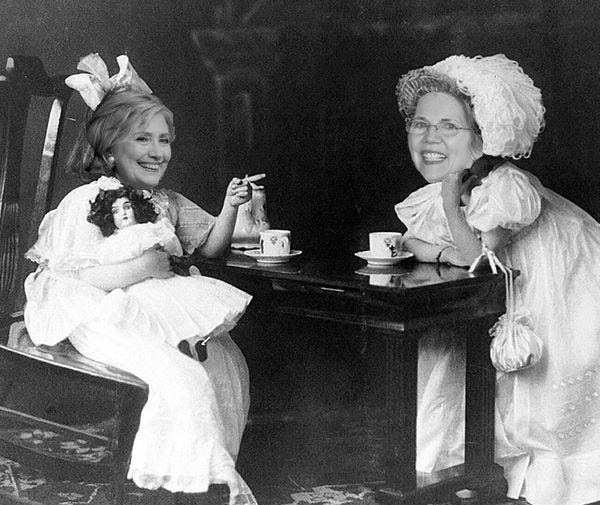 Fuck it, this thing is satire-proof. It is not possible to come up with worse dialogue than what Maureen has type-shitted into the pages of the Gray Lady. The title of this pretend sex chat starring Hillary and Liz Warren? "Girl Squad." Because apparently when she's boner-raging at Hillary Clinton, Maureen Dowd likes to mainline Camille Paglia's taco farts.
