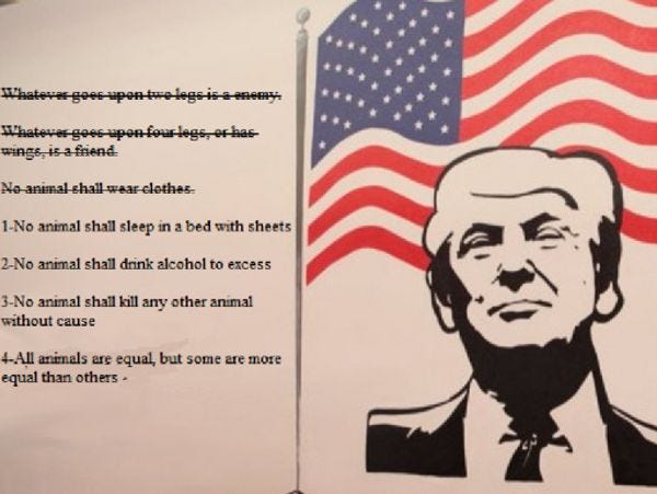 [ Jacob Soboroff on Twitter / WaPo / LAT / Families Belong Together / RAICES legal fund / RAICES bond fund / Animal FarmTrump mural improvement by Alert Wonkette Operative "Stulexington" ]