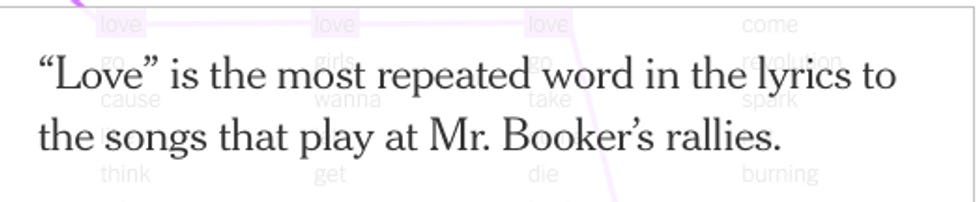Cory Booker's playlist is relentlessly uplifting, but there's little fire or edge. Assholes like Tucker Carlson might think this makes the senator "less black" somehow, but even if his music taste puts us in a diabetic coma, our brother's no common Diamond and Silk. He's just the type of guy whose Kool & the Gang selection is "Celebration" and not "Jungle Boogie." He picks Ms. Lauryn Hill's "Doo Wop" (That Thing) -- great song -- instead of "Everything Is Everything" (greater song). He's the Will Smith "Gettin' Jiggy With It" candidate, which we would've loved a decade or so ago.