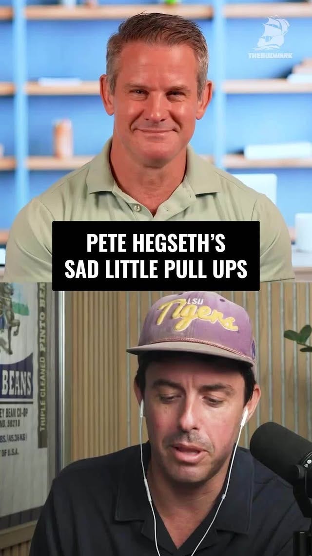 Those are some very sad looking pull-ups, especially Hegseth’s (they look like my attempts and I am a late middle aged old lady with kidney disease, diabetes, severe arthritis…🤦‍♀️).
