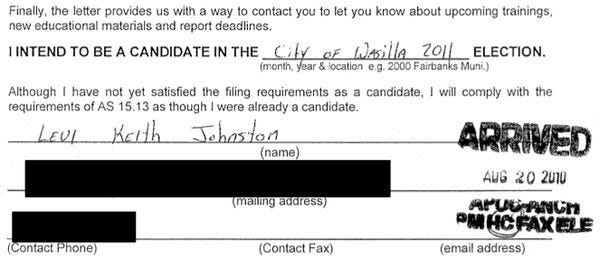 Internet municipal-election registration-document compendium TMZ has obtained Levi Johnston's Alaska Public Offices Commission letter of intent to run for office in Wasilla. Apparently Levi is running for "City of Wasilla 2011." Is it possible to be elected a city rather than just elected to an office of that city? IT'S UP TO THE VOTERS.