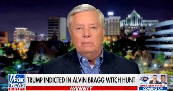 The man flew back to Florida after his arraignment on his own private jet. He slept in a comfortable bed in his tacky but nonetheless spacious resort. Yet, Lindsey Graham is pleading for spare change from MAGA supporters. They could probably raise money more effectively Sinema-style, at a high-dollar, closed door fundraiser. Instead, he looked directly at Fox News viewers and asked for help like Trump is one of those Waffle House employees who someone learns has been working double shifts while living in their car.