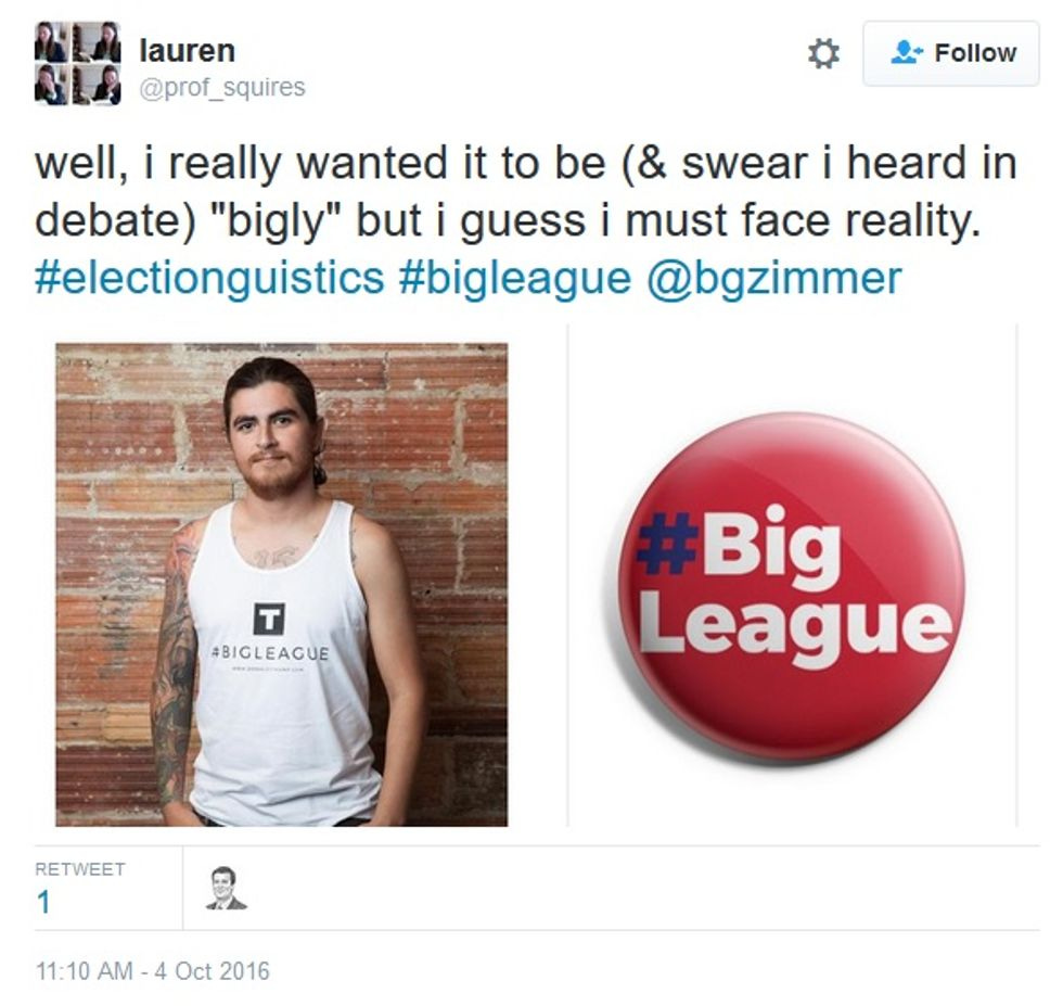 America can't agree on much of anything during this Cromforsaken election, but at least now there is a definitive answer to one of the great mysteries: Donald Trump is saying "big league," not "bigly," according to a cunning linguist who has done an audio analysis of the Great Man's use of the phrase during the first presidential debate. It's a conclusion that Yr Wonkette has reluctantly come to share, not that it's going to stop us from using "bigly," because it's funnier. The New York Times explains the weighty issue with the appropriate gravitas: