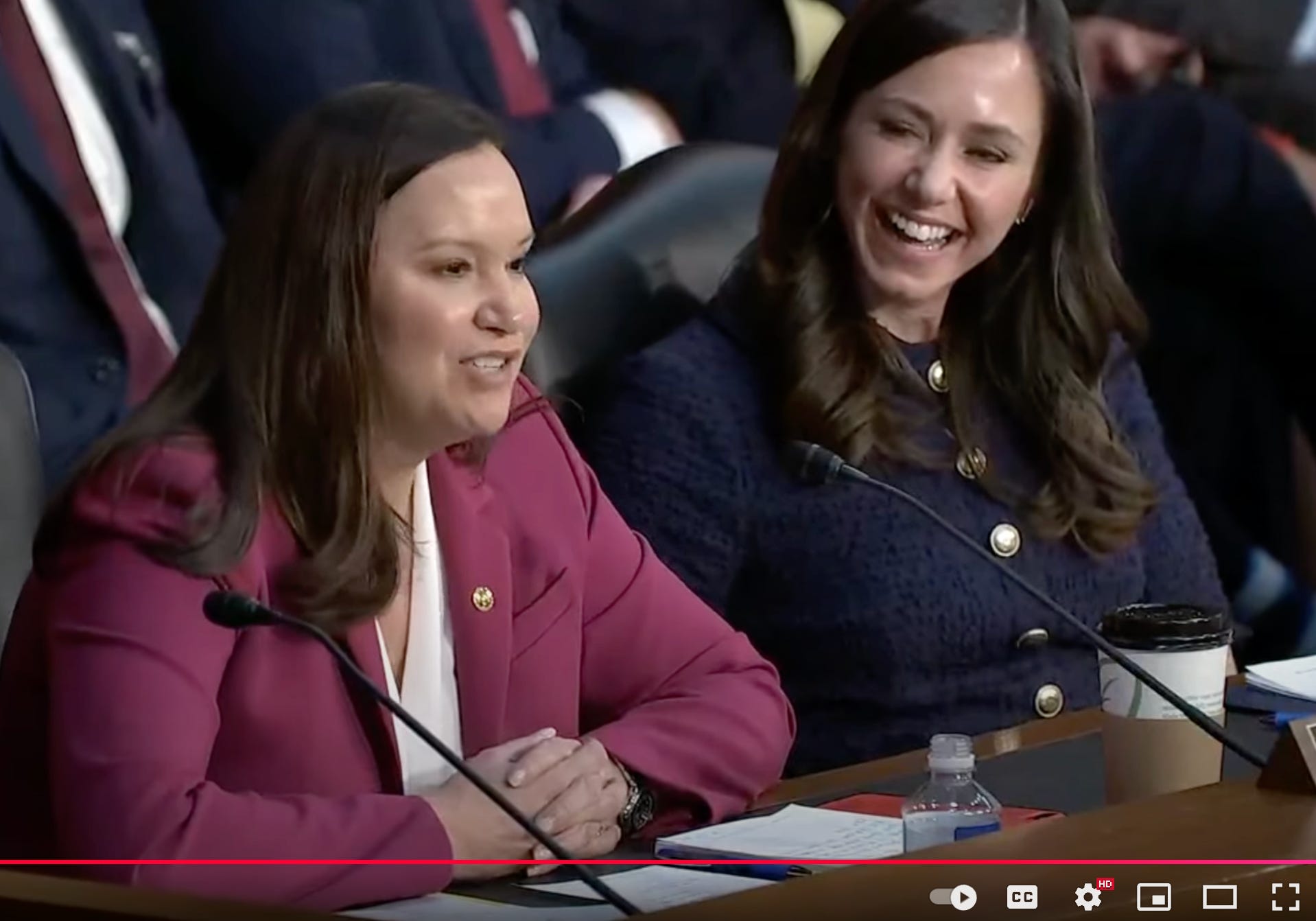 1:26: Katie Britt, the southern senator with the selective Fundie Baby Voice is here to be just as serious as she always is.