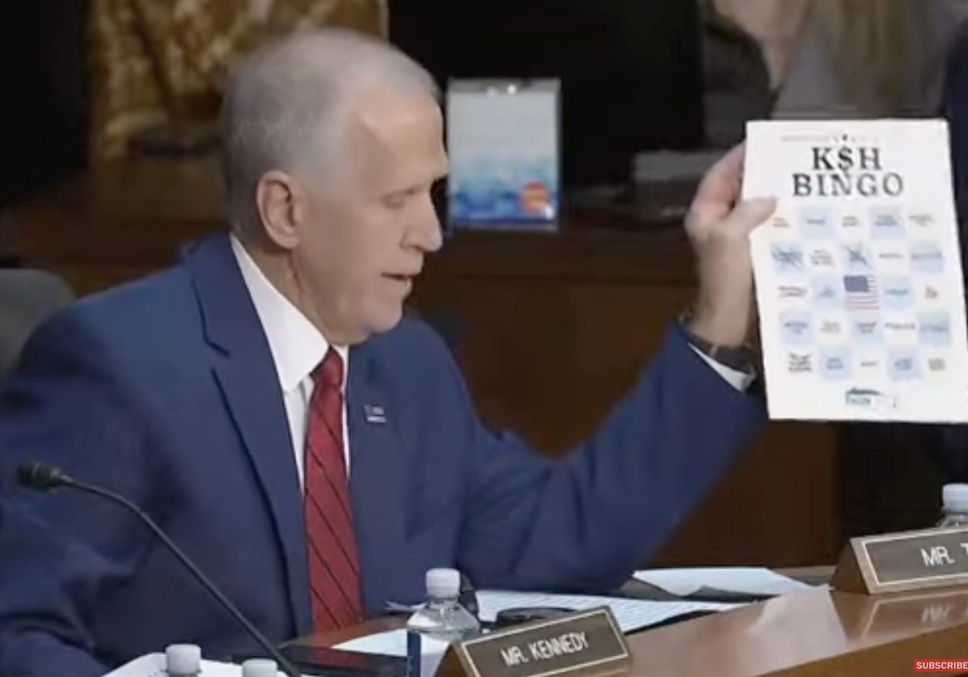 1:15: Schmitt is going through a sad weird game of “would you rather,” listing out every hallucinatory batshit MAGA conspiracy theory he can think of about weaponization of literally everything against conservatives. Basically he and Kash are 69-ing, right in front of the whole Senate.