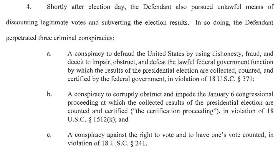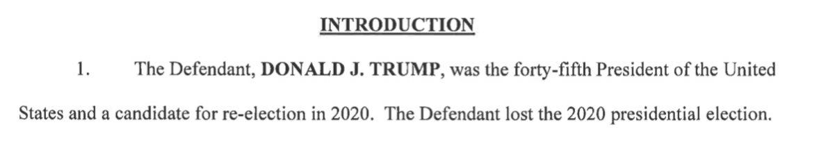 “The Defendant, DONALD J. TRUMP, was the forty-fifth President of the United States and an candidate for re-election in 2020. The Defendant lost the 2020 presidential election.