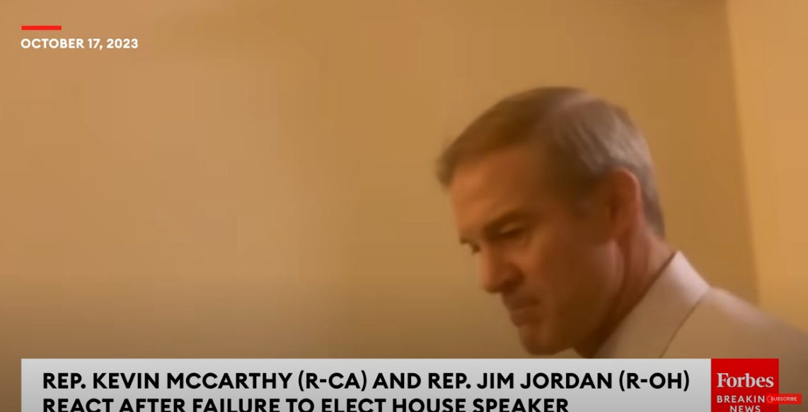 It’s probably also not a good sign for Jordan that, for instance, over at Punchbowl this morning, they spend the majority of their time talking about what Republicans should do after Jordan fails again. Elect acting speaker Patrick McHenry as speaker pro tem for a shorter amount of time? Give him more power? Something else brilliant nobody else has thought of yet?