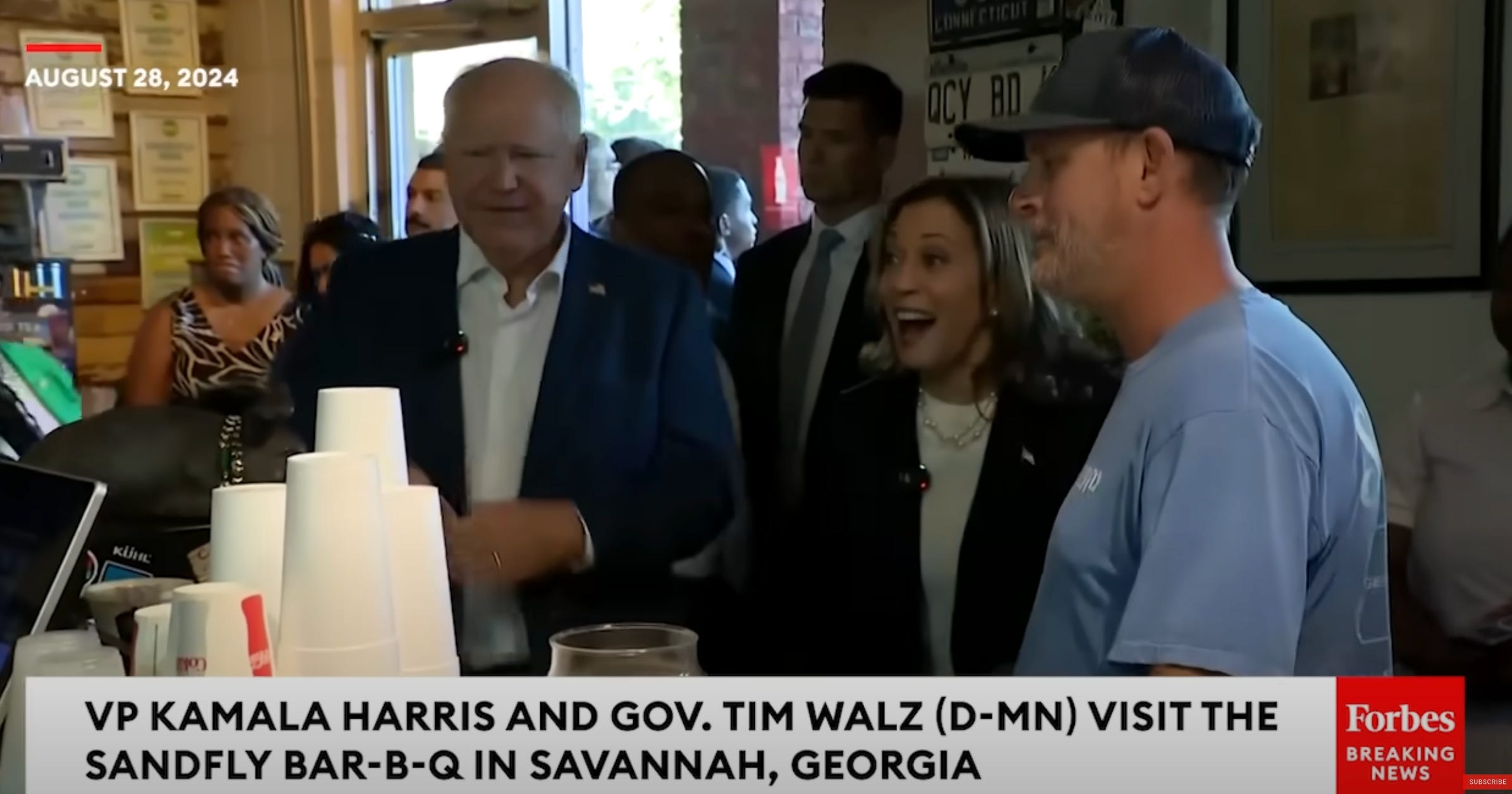 Here’s Harris and Walz at the BBQ joint in Savannah: