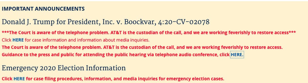 Here's our recap of the case. Long story short, they started off arguing that the Secretary of the Commonwealth Kathy Boockvar violated Pennsylvania election law by excluding Republican poll watchers from the count (despite their own lawyer admitting in court that Republicans were indeed in the room) and so the court had to throw out all votes from Philly and Pittsburgh. That part of the case has largely gone away, and all that's left is a bizarro claim that counties which allowed mail-in voters who botched their ballots to cast provisional ballots in-person somehow deprived voters from other counties of their Equal Protection rights.