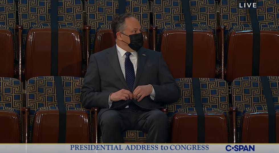8: 55:And now Doug Emhoff has taken his seat and unbuttoned his suit buttons, like you do.