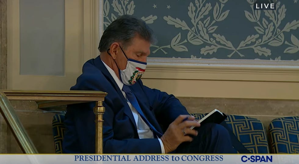 9: 22:Joe Manchin lookin' like he's doing the crossword all like "What is ten letters and means standing in the way of progress and failing to protect democracy? Oh, you're right, my name does fit!"