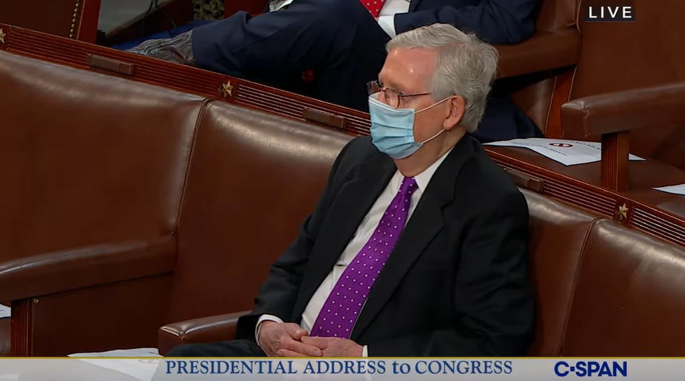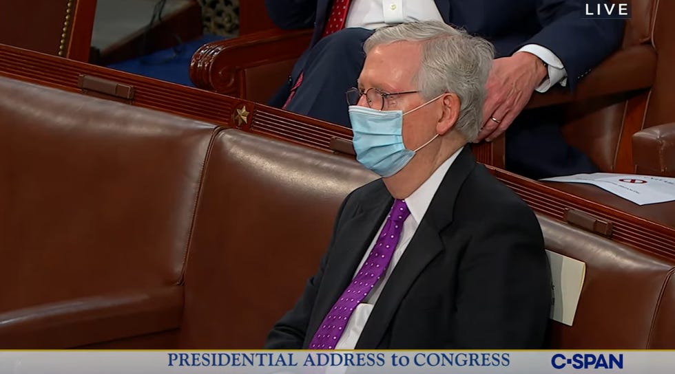 9: 20:Mitch McConnell is not enjoying this dystopian vision Biden is laying out of elected officials who go to work to do things to help the American people.