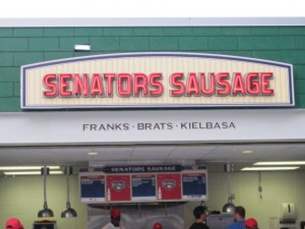 Nats Park is full of delicious dining options, including Ben's Chili Bowl, Gifford's Ice Cream, Five Guys, Flippin' Pizza, and Senators Sausage, which is possibly the worst use of alliteration ever. [You mean "most accurate." -- Ed.]