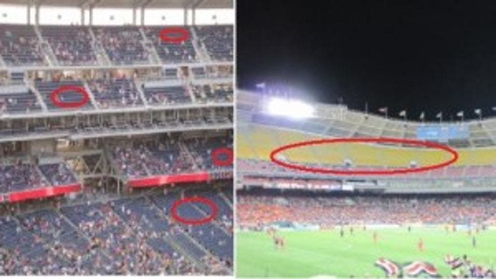Note how both stadiums are empty because, well, both teams suck and everyone has a real home team to care about. So while you may not have any reason at all to cheer on either team, watching the Nats or DC United lose while enjoying delicious food and expensive beer is a fun way to pass a summer day.