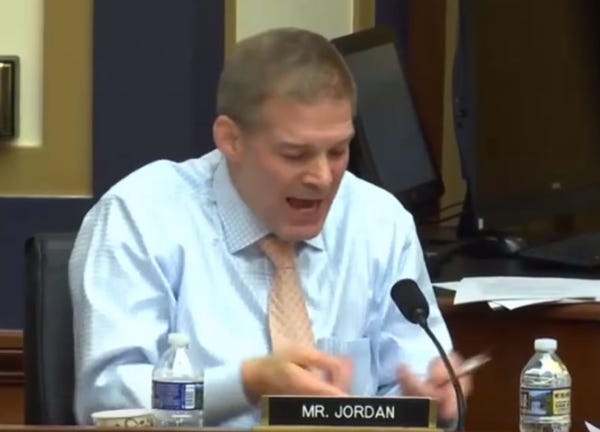 That's why we will start with Ohio Rep. Jim Jordan, a man no one has ever accused of having his dick screwed on correctly. We will transcribe his entire line of questioning for you, and by "transcribe," we mean we are going to write down animal sounds that resemble Jordan's words: