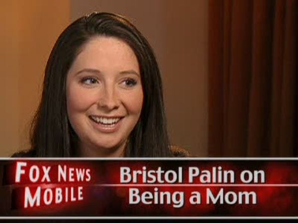 And sure, that is fair. After all, Bristol has never asked America to pleasepretty pleasepay all the attention to her, for years and years, twirling about on the television screen and "writing" her "blog" and lecturing President Obama about how kids need a "mother/father home," so Just Say No to gay marriage, like the Bible says! But she doesn't want us to give her any lectures or show her any sympathy, so we won't do that. We will just fondly remember when she swore to God and Oprah that she was never going to have unmarried sex again!