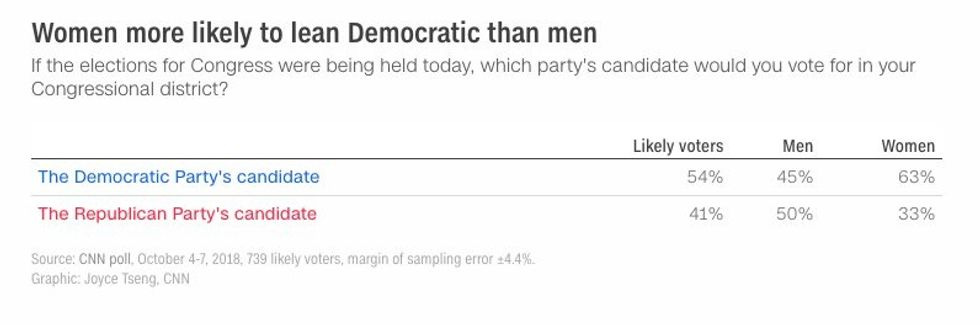 Golly gee, CNN, women sure do "lean" more toward Democrats, don't they! (BY THIRTY FREAKING POINTS!)