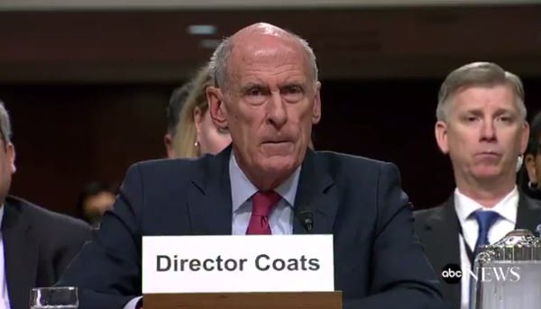 On March 22, less than a week after being confirmed by the Senate, Director of National Intelligence Daniel Coats attended a briefing at the White House together with officials from several government agencies. As the briefing was wrapping up, Trump asked everyone to leave the room except for Coats and CIA Director Mike Pompeo.
