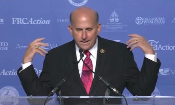The point is that Louie Gohmert is a perfect, godly example of what a Values Voter looks like, and we look forward to hearing what the rest of the perfect, godly speakers (and Donald Trump, supposedly speaking Friday afternoon!) have to teach us about WWJD over the course of this weekend.