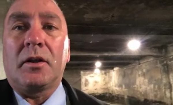 In the video, Higgins takes a brief atrocity tour, intoning about "man's inhumanity to man" (Robert Burns! Or maybe Brecht!) and the horrors of the Nazi regime, as if no one knew about the Holocaust and why it was bad. (Although, Louisiana ...) While inside the gas chamber of Crematorium 1, the only one of the camp's five gas chamber/furnace complexes that wasn't dynamited when the Nazis abandoned the camp in 1945, Higgins explained how the gas was dropped into the chamber, and then showed the reconstructed ovens where corpses were burned, then added, "This is why homeland security must be squared away, why our military must be invincible." Later, outside, he sums up what Clay Higgins Learned From Auschwitz: