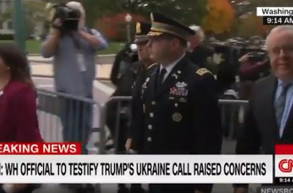 Read the rest of Vindman's testimony and the excerpts if you want to. Spoiler, he confirms literally every other account we've heard about Donald Trump's impeachable crimes so far, just like Fiona Hill does. Oh yeah, and he confirms that Mick Mulvaney is really up to his ass in this. Unsurprising that the House subpoenaed Mulvaney yesterday! (He of course defied the subpoena, because apparently he wants to go down with Trump's crime ship.)
