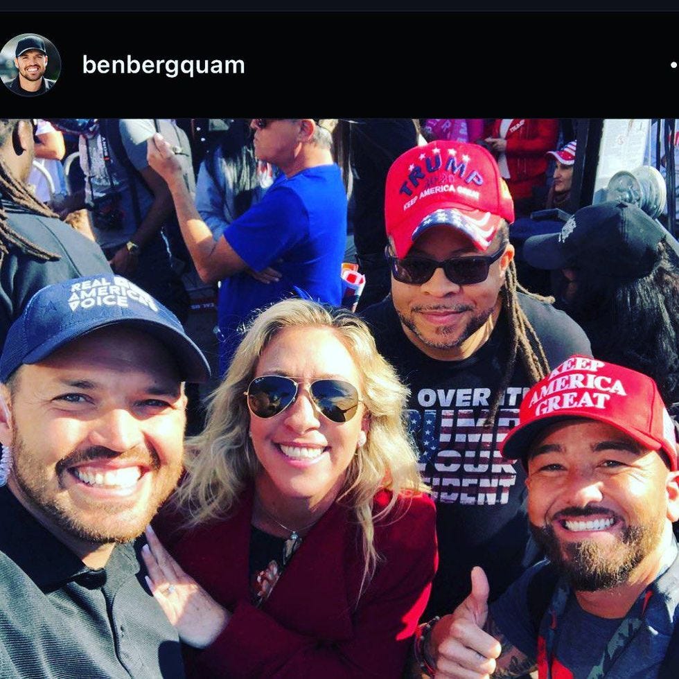 Here's a photo tweeted by Aguero (bottom right) with Greene at a pro-Trump march on November 14.