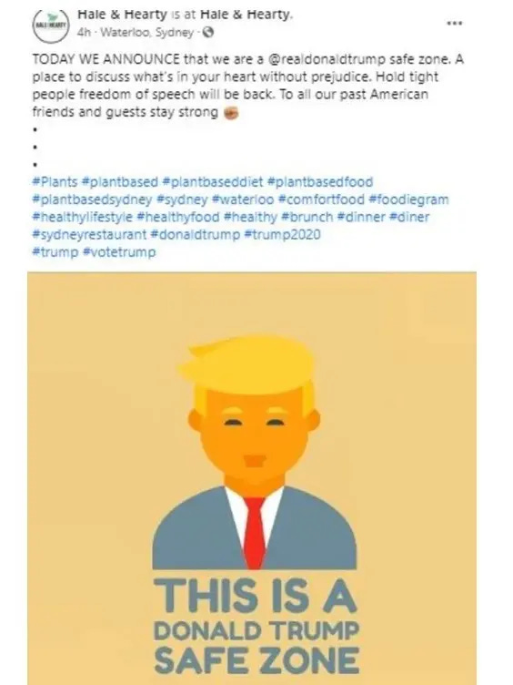 This was not Da Costa’s first venture: He previously owned a vegan café in Waterloo, a suburb of Sydney, Australia, which closed in 2020 after he declared it a “Donald Trump Safe Zone” where the “gay community” was not welcome and where the pancakes would be served with “a side of racism.”