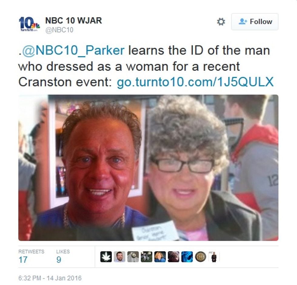 The affair came to light after unnamed "sources" advised local NBC affiliate WJAR's "I-Team" that the Senior Home Resident was not, in fact, a sweet old grammy, but was instead one David Roberts, who drives a van for the senior center.